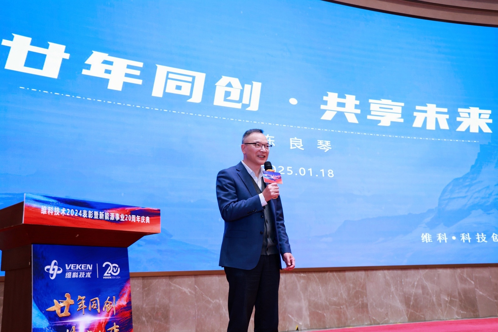 在激昂的氛围中,庆典进入第二篇章。一段精心制作的大事件视频,带领大家一同回顾了维科技术深耕新能源行业 20 年期间的 20 件大事,从创业初期的艰难探索到如今的行业领先,每一个关键里程碑的达成都凝聚着全体维科人的心血与汗水。
