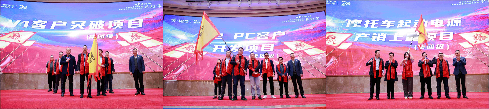 随后,集团何董事长发表重要讲话:何董对这20年来和维科技术一起奋斗成长的维科家人们表达了感谢,特别感谢扛起大旗、庄严宣誓、承担责任奋斗者们。面对新能源市场的激烈竞争,何董强调聚焦战略:聚焦3C大客户的突破,钠电核心产品的落地,战略变革的组织再造和团队再加强。同时,基于陈总的八项重点工作突破,何董特别强调了内部管理,通过内部管理的突破,提升核心竞争力,实现市场增量的突破。为此,董事会也将推出激励和分享机制并配套岗位任职要求和履职能力的考评,为所有维科奋斗者加足马力,装上发动机。未来20年,希望2.0,3.0团队敢于担当、敢战好战,实现团队和企业的双赢。