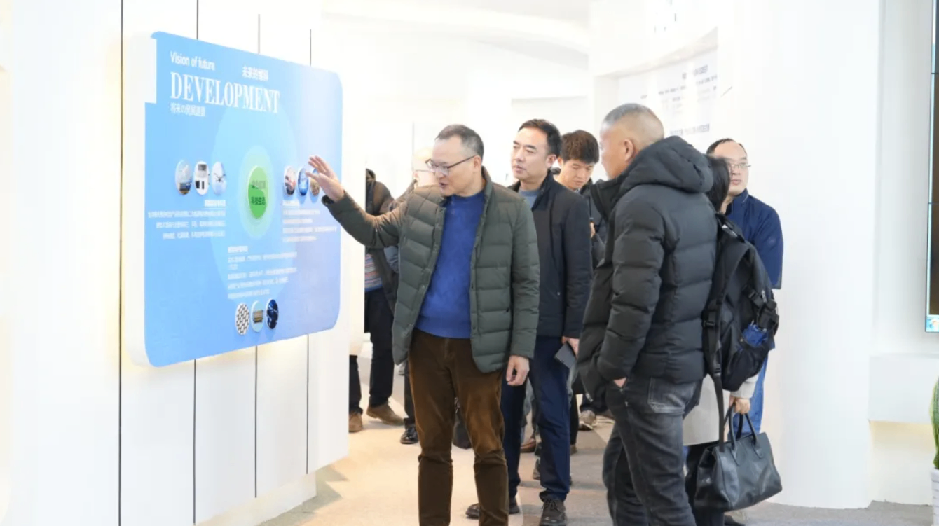 随后,参会嘉宾参观了维科文化展厅,陈董重点介绍了维科集团的发展历程以及新能源、新材料、新物联三大产业的发展情况。通过陈董的介绍,嘉宾们加深了对集团绿色能源科技生态战略发展演变历程的认识,并详细了解了维科技术在新能源领域的多元化产品及前沿技术创新成果。