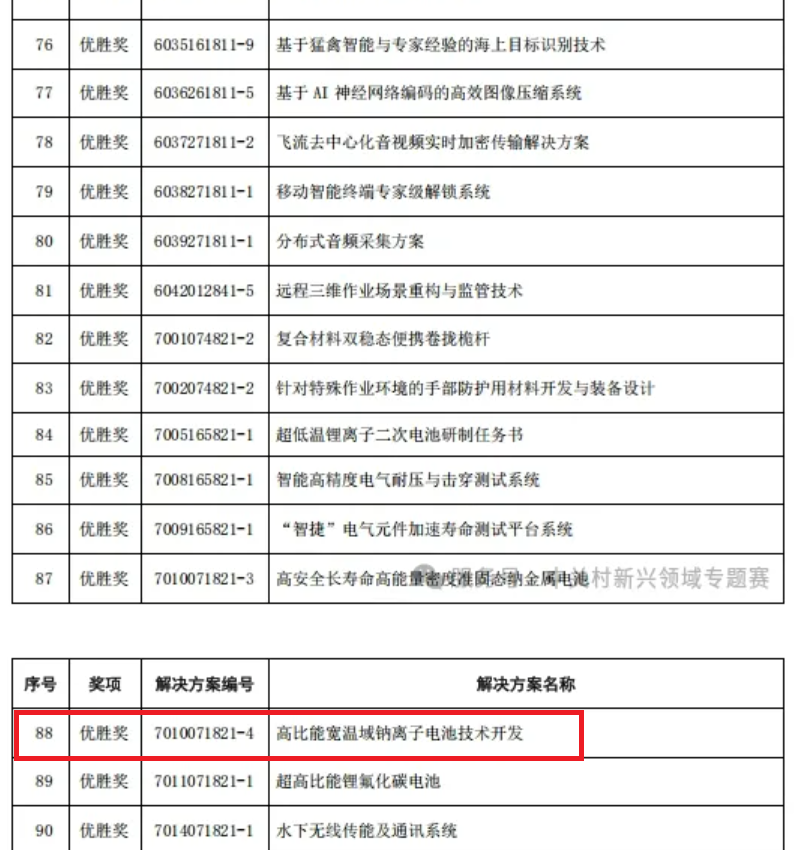 2024年12月17日,中关村第八届新兴领域专题赛组委会发布关于第十三届中国创新创业大赛暨中关村第八届新兴领域专题赛获奖情况的通报。维科技术凭借钠电项目评测第一的成绩成功入选。