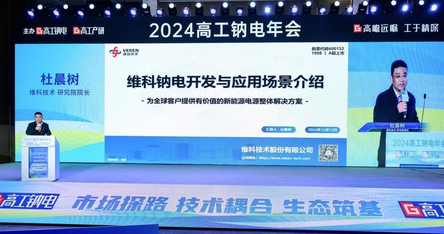 12月12日,以“守正谋变 破卷图强”为主题的2024高工钠电年会在深圳盛大开幕。作为本次活动的专场赞助企业,维科技术携领先技术与创新成果应邀参与此次行业盛会。维科技术研究院院长杜晨树发表专题演讲《维科技术钠电池开发与应用场景介绍》,深度剖析了钠电在储能领域的发展潜力与战略意义。