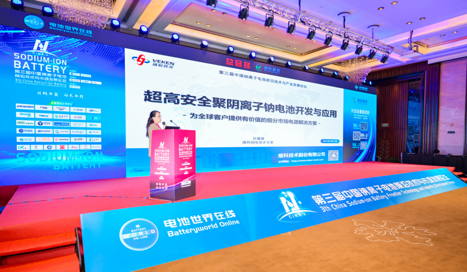 2025年3月17日-19日,由电池世界在线举办的“第三届中国钠离子电池前沿技术与产业发展论坛”在长沙隆重举行,旨在搭建开放、共享的行业交流平台,推动钠离子电池技术创新与产业化进程。作为新能源钠电领域的领军企业之一,维科技术受邀参会并进行维科钠电技术分享,深度解析维科钠电技术开发的最新成果及多场景应用实践,获得行业与市场高度关注。